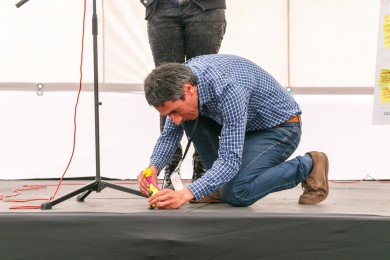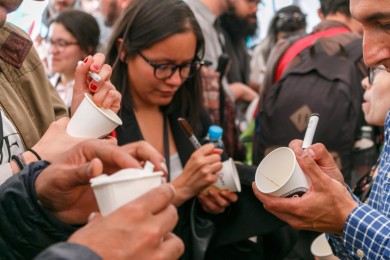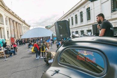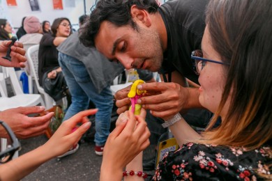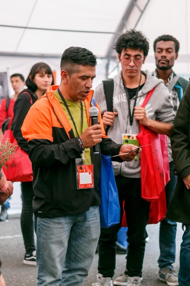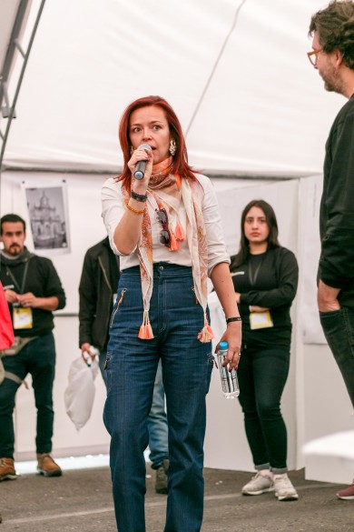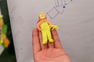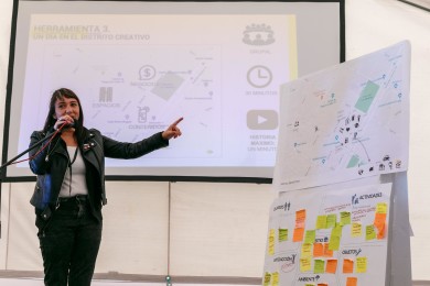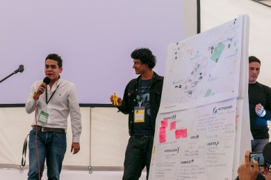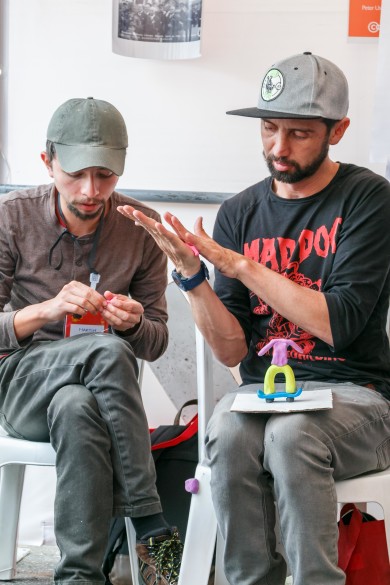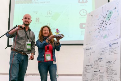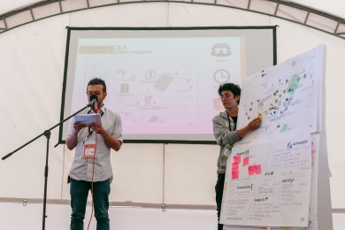 Cuando el tiempo para poder crear se terminó, los facilitadores les pidieron que en un minuto contarán la historia de éste personaje, que subieran al escenario y contaran estas historias de un día en la vida del personaje en el distrito creativo.