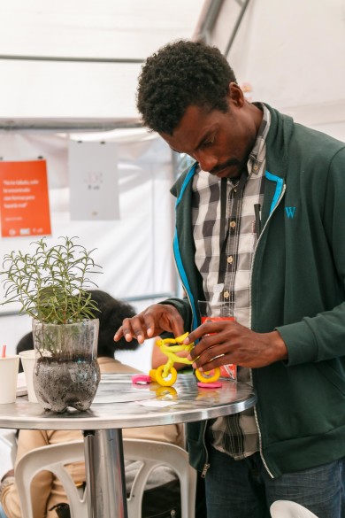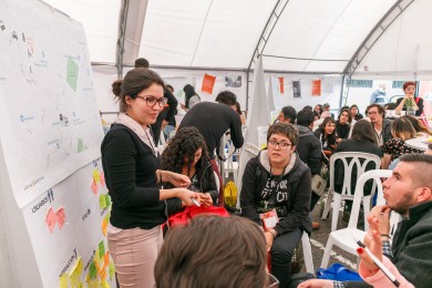 Cuando los participantes terminaron de trabajar en la concreción del AEIOU se les invitó a pensar en un personaje que pudiera interactuar con todo esto que ellos habían pensado. Los facilitadores de La Creatón pidieron a los participantes darle forma a ese usuario, alguien que tuviera nombre, edad, que pudiera interactuar con el espacio, que pudiera tener unas cualidades con el espacio. Para esta tarea tuvieron alrededor de 20 minutos para crear una historia a este personaje: niño, adulto, viejo, joven o como ellos quisieran.