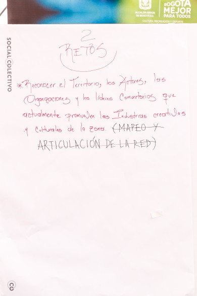 pidió contar un día en la historia de este personaje en el Distrito Creativo. Para esta labor se les entregó un mapa donde pudieron graficar una ruta, pudieron identificar aquellos lugares donde este personaje interactuara y pudiera contar su vida. Las creaciones fueron tan diversas como grupos había, además para la presentación se les facilitó plastilina para la modelación de este personaje. Hubo representaciones realmente simbólicas pero también hubo modelos donde se representó a aquellos personajes, personajes que interactúan con el espacio personajes diversos y complejos.