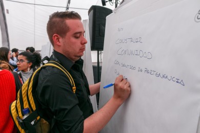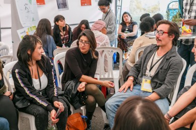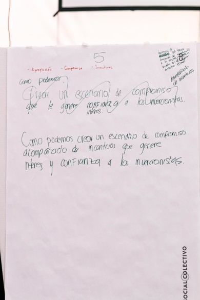 Tras una invitación, se propicia que los participantes se puedan presentar y crear primeros puentes de relación entre este grupo de trabajo. Pasan aproximadamente 15 minutos, la gente claramente, comenzó muy tímida pero poco a poco fueron apareciendo las palabras y sus experiencias, sus expectativas y qué esperan de este día de trabajo. No es falso afirmar que durante todo el día se observó cómo esta interacción inicial abrió las puertas para un trabajo conjunto y sin tanto miedo al otro.